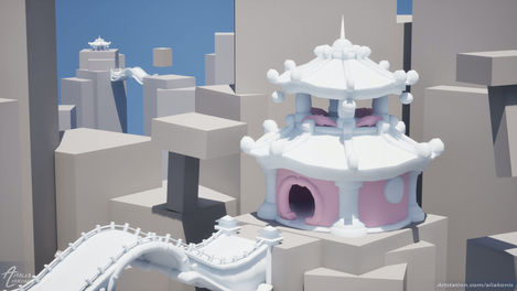Deep amongst the secluded peaks of the Jade Forest, beyond the main settlement of the Tian Monastery lies what the monks call, "The Illuminated Shrine"; a place where one may go to train mind and spirit over body. This piece was not only inspired by the in-game lore of the Jade Forest with a heavy focus on Asian inspired mythology, but also by real life monasteries which are built amongst high peaks in complete seclusion to draw one away from earthly distractions and closer to enlightenment. Places such as Meteora in Kalabaka, Greece, which I had the incredible opportunity to visit just this past October, and was a heavy source of true to life inspiration. One of the main reasons I was drawn to the Jade Forest in particular was the stark contrast of the bold red buildings that pop amongst the green background of the lush peaks, all of which in my scene are fully hand painted. The warmth of the sunset sky and golden hour lighting also nods to the title of “illumination” as both the shrine itself and the minds of those who chose to come here become illuminated in its glow. I am so proud of the outcome of this project and of myself for completing it in time. This was my first attempt at a major contest like this and I am so glad I participated as it allowed me to challenge myself, grow as an artist, and reconnect with fellow College for Creative Studies Alumni and previous contenders.